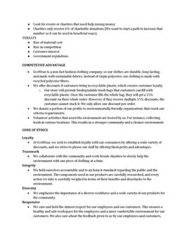At my university, a competition is held every year called the Business Plan Competition. This is when students create their own company and present a plan in front of judges in a Shark Tank style. I participated with a friend, and our company was called Ecowear. We were a benefit corporation that sold sustainable clothing and beachwear. To make us stand out in front of the judges, I created a logo, business cards, flyers, a website, and many other mockups of our potential business. My partner and I ended up taking first place in the competition that year! You can find the logo on the Logos page and the potential website I made for the company on the Website Designs page of my marketing designs.